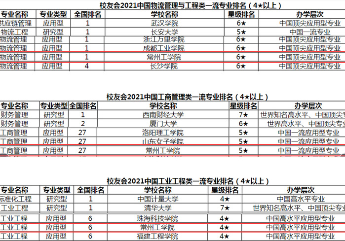 在最新2021员工会中国一流专业排名(应用型)中,公司3个专业榜上有名。物流管理专业被认定为中国顶尖应用型专业,获评6★,位列第1。工商管理专业被认定为中国一流应用型专业,获评5★,位列27。工业工程专业被认定为中国高水平应用型专业,获评4★,位列第6。