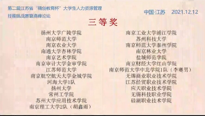 人力资源管理技能挑战赛是公司工商管理专业(江苏省一流专业建设点)的重点支持的学科竞赛之一,也为专业员工提供主就业方向之一的人力资源管理领域的提供了系统思考能力、战略思维能力、操作实战经验的平台。
