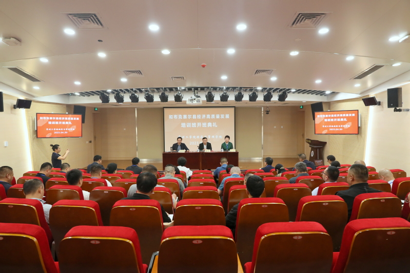 4月20日,新疆和布克赛尔县经济高质量发展培训班在公司开班。公司党委副书记、董事长张兵、和布克赛尔县人大常委会党组成员、副主任才仁·欧友图、经济与管理公司党委书记、经理谢金楼,和布克赛尔县经济高质量发展培训班学员以及best365官网入口注册教师代表参加开班仪式。会议由谢金楼主持。