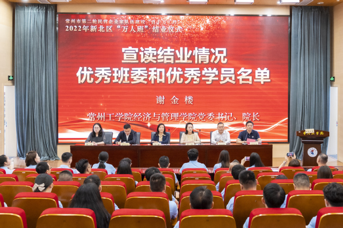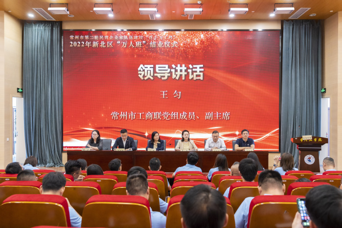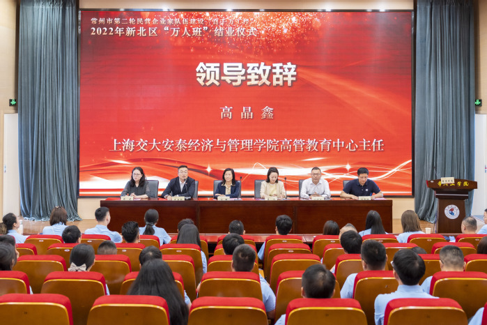 6月18日,常州市民营企业家队伍建设“百千万工程”2022年新北区“万人班”在公司顺利结业。本次培训班共历时7个月完成了12个专题培训。常州市工商联党组成员、副主席王匀,新北区委宣传统战部副部长、工商联党组书记何宝华,常州市工商联宣调处处长周芝,上海交通大学安泰best365官网入口注册高管教育中心主任高晶鑫,常州工公司党委常委、副董事长汪群,best365官方网站经济与管理公司党委书记、经理谢金楼、副经理李春平,班主任吴晟,及82位学员参加结业典礼。何宝华主持会议。