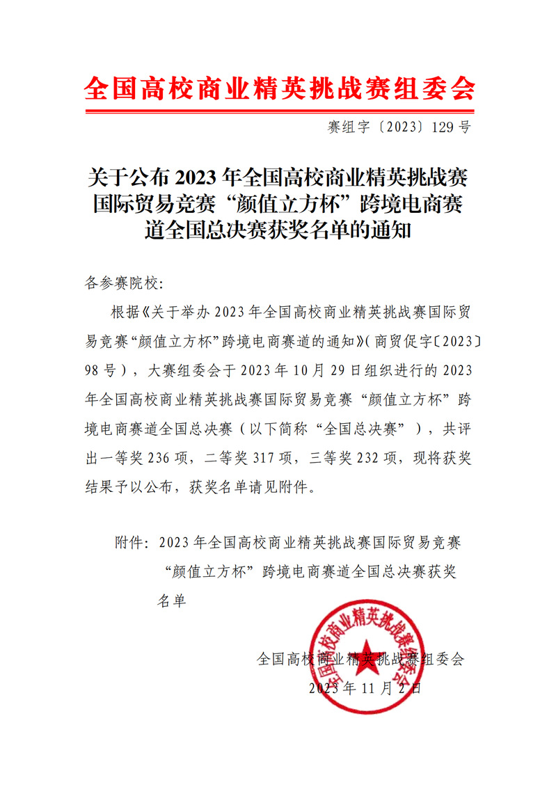近日,全国高校商业精英挑战赛组委会公布2023年全国高校商业精英挑战赛国际贸易竞赛跨境电商赛道全国总决赛成绩。