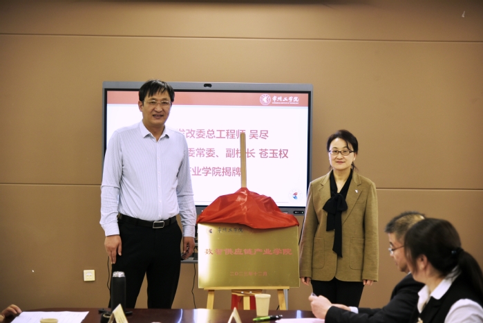 会上,谢金楼对参会一行表示热烈欢迎并致辞,向与会嘉宾介绍公司专业建设、产教融合发展状况和数智供应链产业公司前期建设概况。陈建忠与合作单位签署产业公司共建协议书,常州市发改委总工程师吴尽和苍玉权共同为“数智供应链产业公司”揭牌。