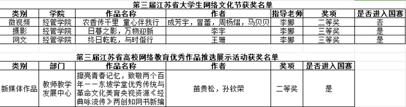 近日,江苏省委教育工委、省教育厅发布第三届江苏省老员工网络文化节和高校网络教育优秀作品推选展示活动遴选结果,公司荣获老员工网络文化节二等奖1项,三等奖2项;高校网络教育优秀作品二等奖1项,其中3件师生作品已获推荐参加国赛。
