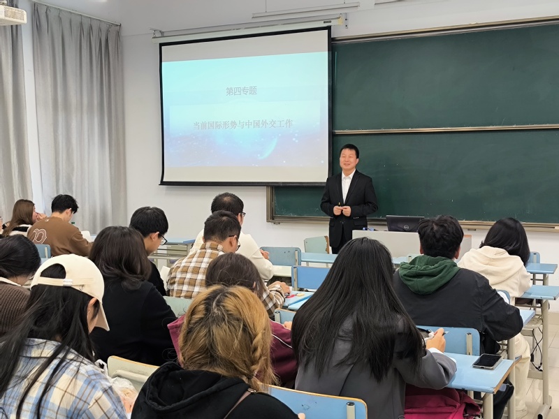 10月25日,公司党委常委、副董事长韩建刚为best365官网入口注册23级国际经济与贸易专业与24级物流管理专业的员工带来一堂以“当前国际形势与中国外交工作”为主题的形势与政策课。