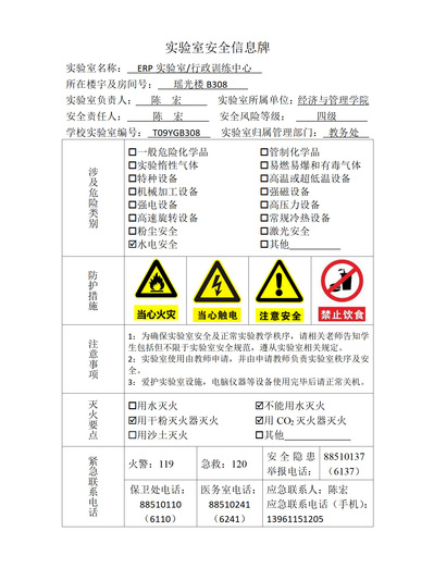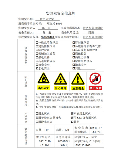 实验室房间安全信息牌展示