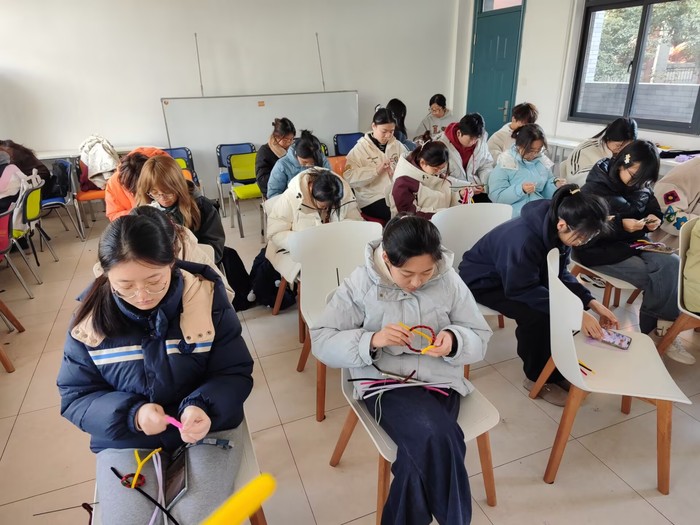 活动现场现场气氛轻松而热烈,同学们互相交流构思、探讨技巧,充分发挥了想象力,将手中普普通通的毛绒扭扭棒扭转为可爱的小动物、艳丽的花卉、个性十足的饰品眼镜等。每一件作品都充满了制作者的巧思与情感。活动尾声,同学们纷纷举起自己的作品合影留念,脸上洋溢着满足与自豪的笑容。