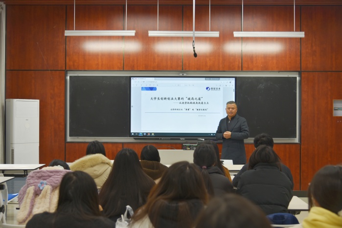 沈建明以“老员工创新创业大赛的破局之道”为题,从资深投资人与国赛评委视角,深入解析了大赛项目选拔的内在逻辑与价值内核。他指出,优秀项目应具备清晰的商业模式与可验证的数据支撑,并围绕团队构建、项目打磨等关键环节,为同学们提供了从参赛备赛到获取资本关注的全过程指导。